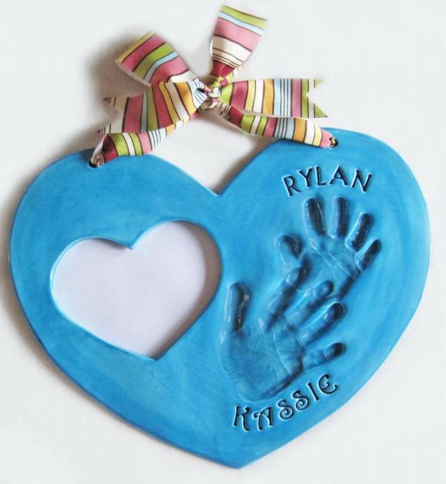 Remember how tiny baby's hands are with a keepsake you can display for Valentine's Day or all year round. This sweet heart is from Mitts, Piggys and Paws. You send them an impression of your child's hand in PlayDoh and they'll create a one-of-a-kind piece of art.