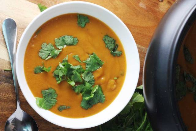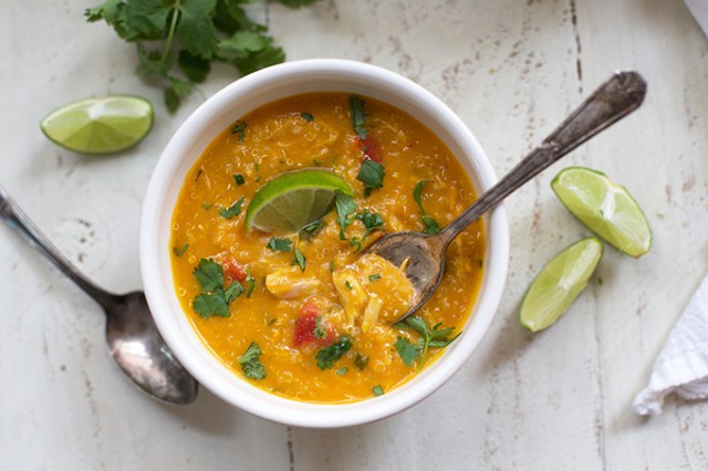 This pumpkin and lentil soup from Scrummy Lane is thick and creamy and packed with nutrition. Prep in the morning and you'll have a healthy dinner ready for the evening. Bonus: this is a soup that tastes just as good reheated the next day.