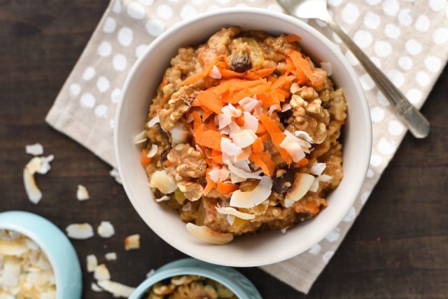 Carrot cake for breakfast? Yes, please! This recipe from Foxes Love Lemons will revolutionize your morning routine—just prep before bedtime and by dawn you'll have a bowl of sweet creamy, carrot and coconut flavored oatmeal to set the kids up for the day.