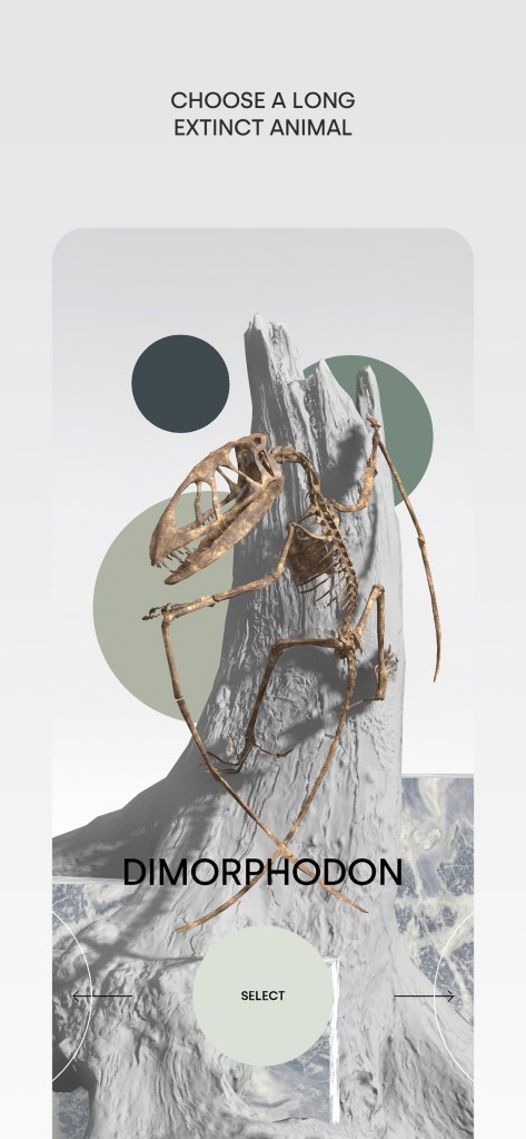 Choose one of three photorealistic fossils to explore: A 300 million-year-old five-eyed fish-like Opabinia, a flying Diamorphodon dinosaur or the sabre-toothed Smildon. Use your phone’s camera to see the world through the eyes of your chosen prehistoric creature and learn about prehistoric life.