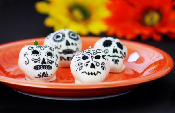 For an easy but delicious take on sugar skulls, try this recipe from Growing Up Bilingual. Candy markers make it a breeze to decorate the white chocolate strawberries. Sugar skulls are traditionally part of the ofrendas (offerings) made to deceased loved ones as part of the Dia de los Muertos celebrations.