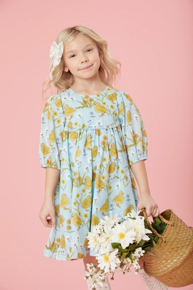 You can't have Easter without the chicks, and this sweet cotton dress has them all!