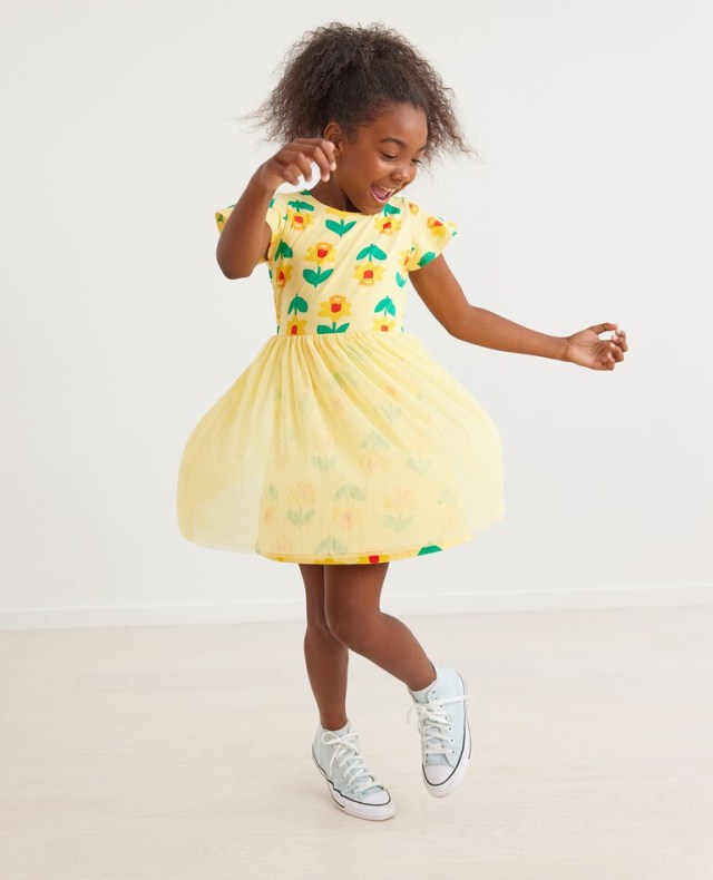 The tulle on this cute dress is recycled and so soft, so it's gentle on skin and the environment!
