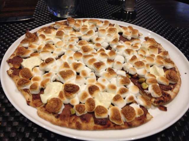 Does your tot love Nutella? S’mores? Anything and all things gooey? Then they’ll adore this Nutella pizza meant for sharing. It’s thin pizza dough topped with mascarpone, Nutella, pistachios and mini-marshmallows. Rich and delicious, this dessert is the best combo of pizza and dessert.