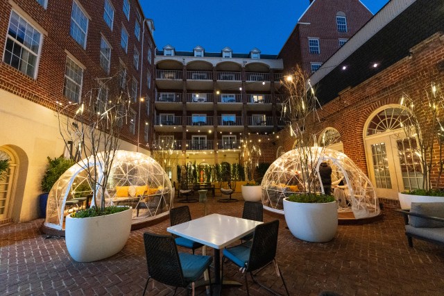 Fiola Mare Celebrating a special occasion or yearning for a trip to Europe? Fiola Mare on the Georgetown waterfront is your escape and their igloos let you experience outdoor dining all winter long. Igloos can accommodate up to 6 guests and 2 hour rental fees range from $175 to $275 depending on the day and time. Fiola Mare’s menus are inspired by Italian coastal cuisine, feature homemade pasta and change daily (they may not be a fit for picky eaters). Their craft cocktail menu is extensive and even offers 2 mock-tails for kids to celebrate with. The igloos are heated, but still dress for outdoor conditions.