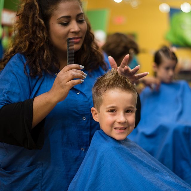 Sports Clips This hotspot doesn’t just cater to the over-35 NASCAR fanatic or Nationals-loving grown-up; it takes rookies, too. Billed as a sports-themed franchise with “guy smart” stylists who will make your dude feel right at home. Got extra time? Feel free to linger and watch some ESPN after a quick trim. Time-crunched parents will be happy with speedy service. Tip: “Lil’ Jess” is amazing with both clippers and scissors if your little dude needs some clipping in the back and shaping on top.