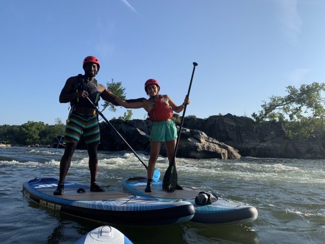 Stunning views of the Potomac River await National Harbor paddlers in Prince George's County. Go to Boating in DC's boathouse to rent a paddleboard by the hour. No experience is needed as they provide a quick lesson before you head out on the water. Rentals include a life jacket and paddle. Wait until sunset to see the Capital Wheel lighting up the sky.