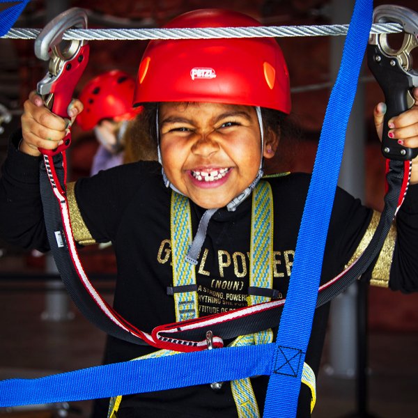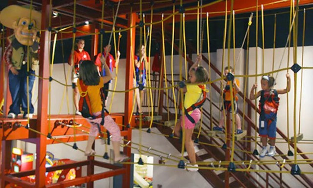 The largest indoor ropes course in the United States boasts 16,550 square feet of courses split into a Kids Course for ages 4-9 and the Main Course for ages 7 & up. Guests wear a full-body harness and use a smart belay system so climbers can go it alone or with a partner. The course uses via ferrata, a steel cable that runs along the route and is attached to the rock every 3.3-32.8 feet.