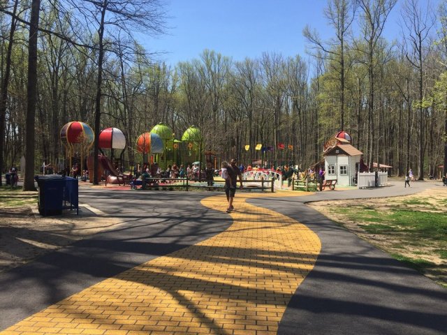At Watkins Regional Park in Prince Georges County, you can follow the yellow brick road (literally) to a Wizard of Oz-themed playground that’s guaranteed to have your kids singing, “We’re off to see the Wizard, the wonderful Wizard of Oz!” But don’t take our word for it. This is one fun spot you’ll have to see to believe. Read on to discover this hidden gem.