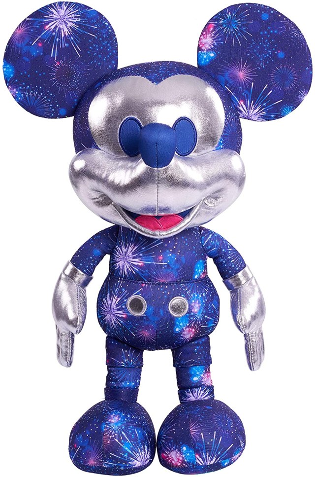 The second limited edition plush is the Fantasy in the Sky Mickey Mouse Plush that celebrates the Disney Parks’ tradition of fireworks. The adorable plush is made of thick polyester fabric with a fireworks print that comes with metallic detailing, embroidered buttons, and embroidered eyes.