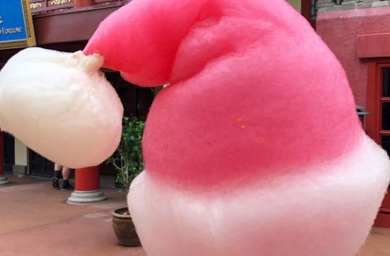 The red and white Santa hat is spun sugar goodness and reportedly available at Epcot’s China Pavilion as a made-to-order holiday-themed treat.