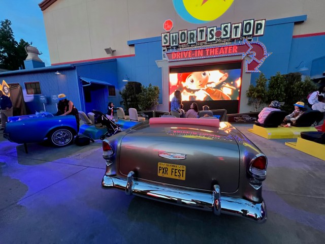 When the sun goes down (or really a little bit before), Club Pixar will take over the Hollywood Backlot at Disney California Adventure featuring Dj-led music, live performances, free family games (like cornhole and magnetic fishing games), fun photo backdrops, a bar with specialty crafted drinks, and a “drive-in theater” where people can sit in the back seat of a 1950s-style Cadillac and watch animated shorts. It’s a nice place to spend a little time while you’re waiting to get on Guardians of the Galaxy just next door. Don’t be surprised if you see Mr. and Mrs. Incredible wandering the crowd as well!