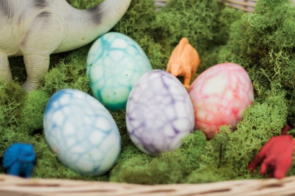 Step eight: Ta-da! You have a set of dino eggs. We set ours up with some pet dinosaurs. Psssst…if the colors don’t weird you out, the dinosaur eggs also make great egg salad sandwich ingredients!