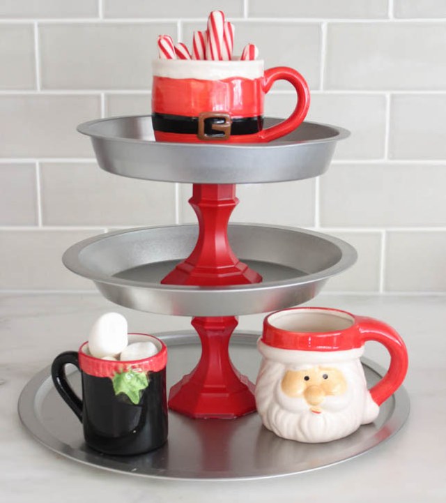 When you want to add a little seasonal flair to your party platters, some dollar store cake pans and candle holders can be crafted into a festive tiered appetizer tray. Get all the instructions at Southern State of Mind.