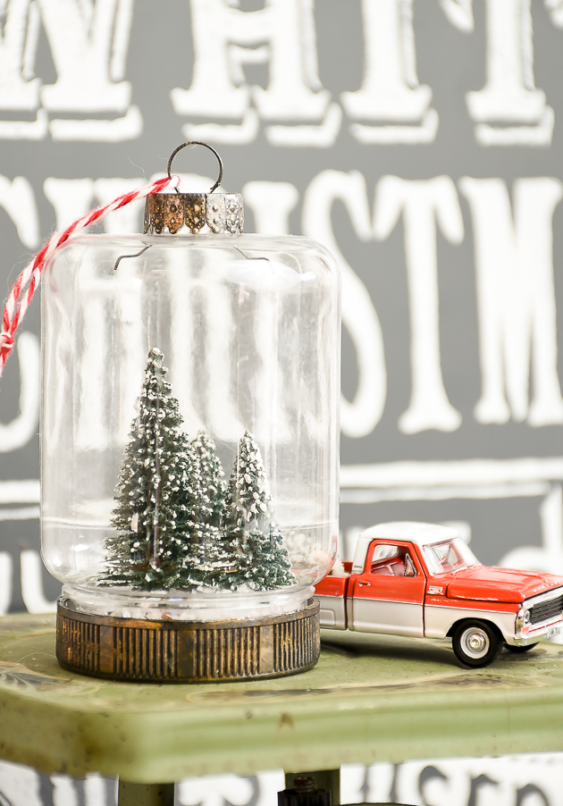 Some metallic primer on the lid and top of a simple dollar store ornament and the effect is pure vintage. These snow globe ornaments make the perfect addition to a winter tree or would work well on a mantelpiece, depending on the size. Little House of Four has all the details.