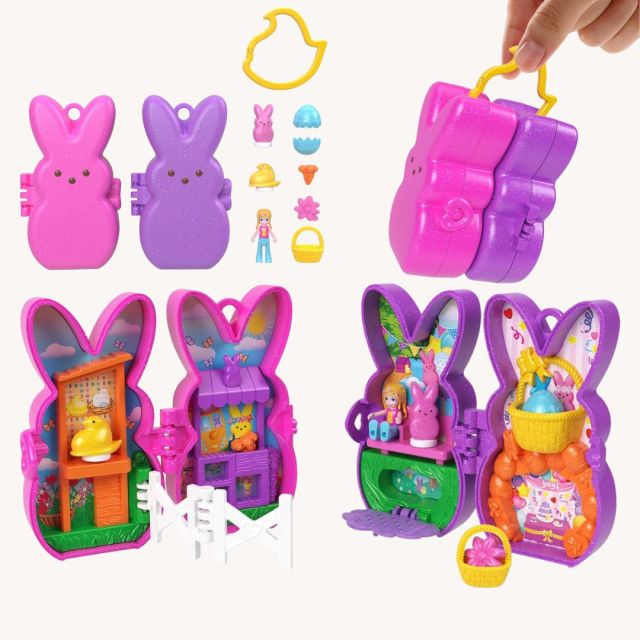 It's the collab we didn't know we needed. The Polly Pocket x Peeps mashup includes two mini playsets, six accessories, and a clip keychain.
