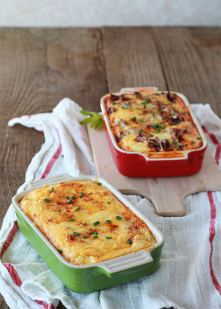 Fancy up your go-to strata by whipping up this Chiles Rellenos version from Kitchen Treaty. Filled with yummy ingredients like eggs, jack and cheddar cheese, and of course, green chiles, if you've got picky eaters at home, be sure to check out the option without spicy chorizo.