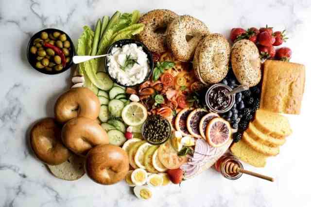 This board by Windy City Dinner Fairy is the kind of thing bagel lovers dream about. Imagine a nice spread of bagels with plenty of topping options—from classic cream cheese and smoked salmon to fresh fruit and veggies.