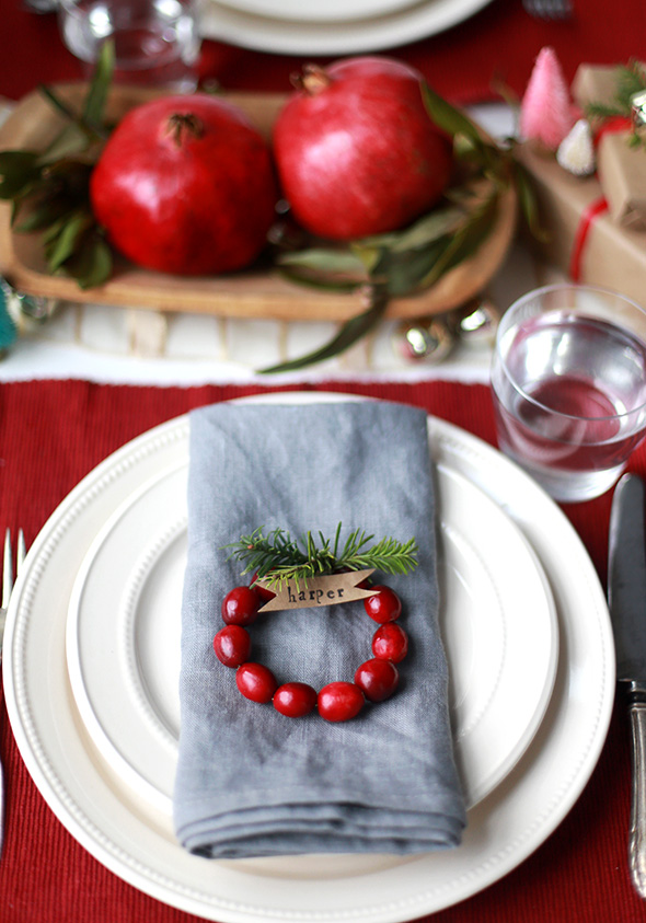 Holiday gatherings mean plenty of table guests and we found the perfect festive detail by Liz Stanley at Say Yes. These fresh cranberry mini-wreaths will delight your guests and we think they’d make perfect ornaments for any tree, too. Click here to check out the how-to steps at Say Yes.