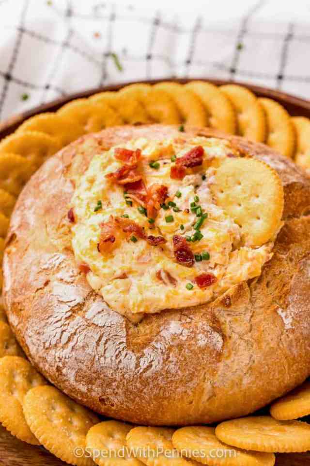 With a name like that, you know it’s going to be sinfully good! It’s similar to Crack Ranch Dip with its bacon, cream cheese, and chives but is served in a bread bowl which basically means it’s a meal. If you’d rather be fancy, you can serve on crisp crostini. Get the recipe from Spend with Pennies.