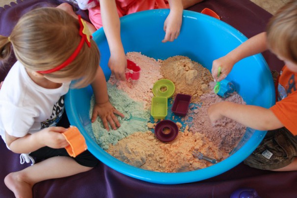 Playdough. Th original sensory play material you didn’t even know was a sensory material. If you opt for buying some from the store, it’ll be all about the touchy-feely aspect. If you make your own batch at home, add a scent or sparkles to give a couple of the other senses a workout, too. For the ultimate playdough recipe, click here.