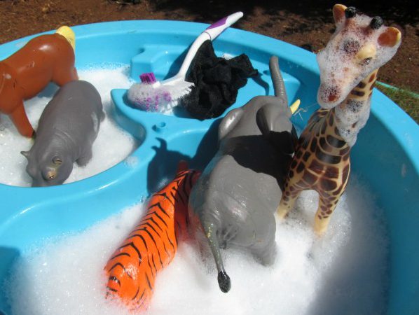 Okay, okay, so slime is crazy-popular. And you’ve seen it just about everywhere. Well, there’s a reason for that. It’s got textures like you wouldn’t believe and can completely catch your child’s attention, drawing them into the awesomeness of the activity for more than two seconds. Make the slime-making just that much ‘more’ by adding glitter, crafts feathers, pieces of play clay or small waterproof toys. Not sure how to make slime? Get a rad recipe here.