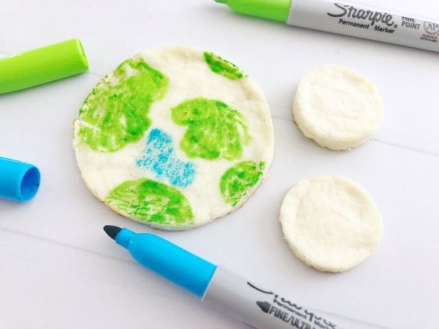 This easy peasy craft from Royal Baloo just requires wax paper, paint, brushes and a little black paper. Kiddos can express themselves creatively, then trim into an earth shape and hang in a window for a gorgeous stained glass effect.