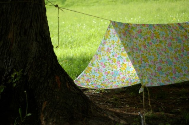 Take a cue from Mama. Papa. Bubba. and craft this cute teepee in your backyard. With bamboo stakes, a king-sized sheet and clothespins, it’ll come together in five minutes.
