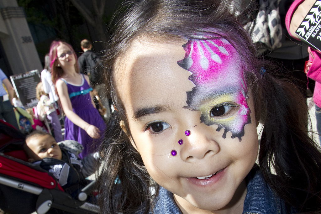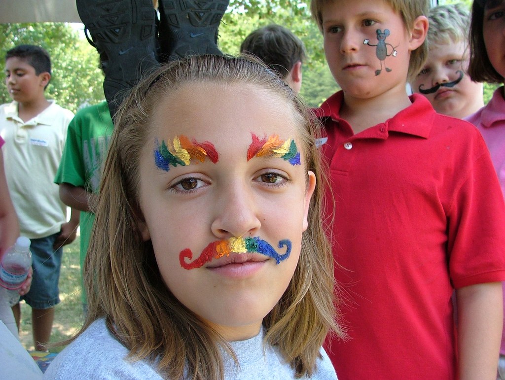 Second to whiskers, little is easier than adding a mustache. Consider going multi-colored to kick things up a notch. Extra points if you make use of eyebrow real estate! Dress Up America’s Face & Body Crayons will give you extra control with color and are another great option for kids to use themselves.