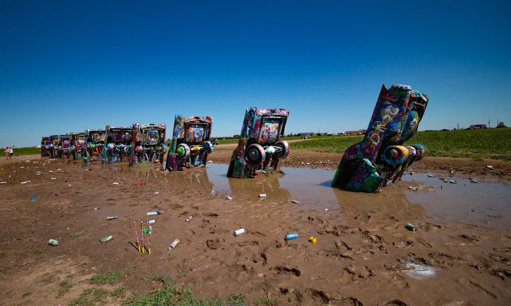 Upon leaving Amarillo, the first sight you want to catch is the Cadillac Ranch, a famous Rout 66 icon. To get there, get on I-40 E and drive about 10 minutes. This attraction is right off of the highway out in a field. Here you find a series of Cadillacs lined up like dominos and buried hood-first in the ground. Bring spray paint and let the kids go to town leaving their own mark on the cars, which are already covered in paint. It’s an opportunity sure to please the art lovers in your family.