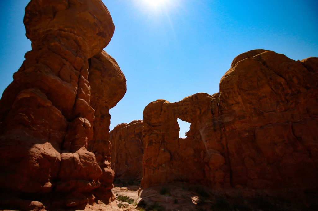 While in Moab, you will want to hit Arches National Park. Here you find towering red-rock formations that leave visitors in awe. Look for pinnacles and stone formations with windows in the middle of them. There are trails for scenic hikes and viewpoints that you can drive up to as well. Arches is the perfect way to wrap up your road trip. You have plenty of opportunities to get out and explore and even more opportunities for great family photos.