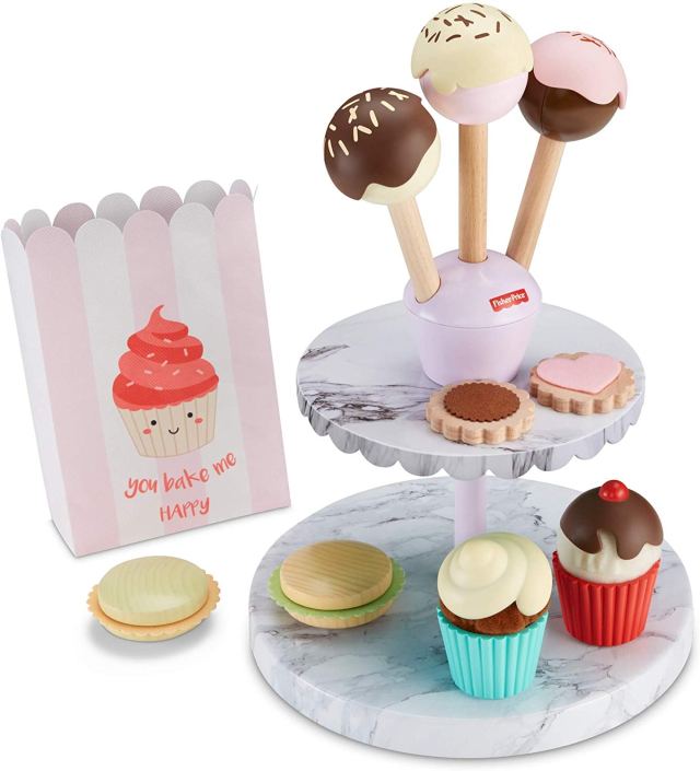 In addition to colorful cake pops, your little baker can serve up cupcakes, cookies and macaroons to their clientele. The set makes the perfect companion to Fisher-Price’s Pretend Charcuterie Snack Set.