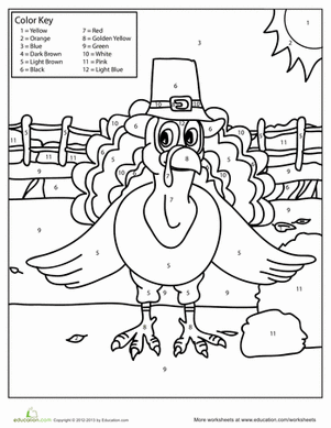 Follow the numbers to find the colors to create this exciting Thanksgiving picture! It'll be such a festive way to celebrate the holiday. Get the worksheet from Education.com