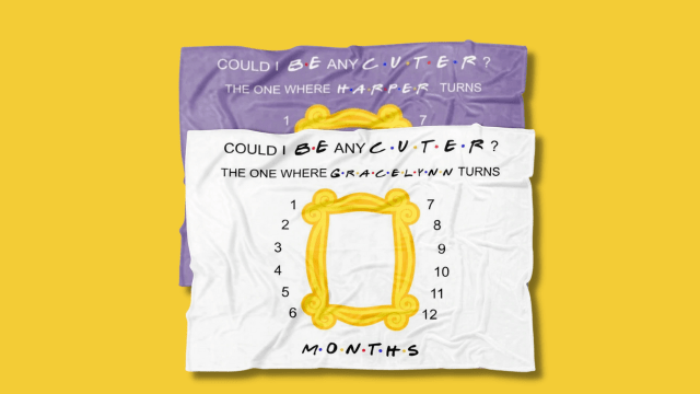 Milestone blankets make a great backdrop for chronicling your newborn’s growth over the first year. Now there’s a fun way to incorporate your favorite show into your baby’s monthly pictures. BATZkids sells two limited-edition customizable blankets inspired by the hit TV show, Friends.