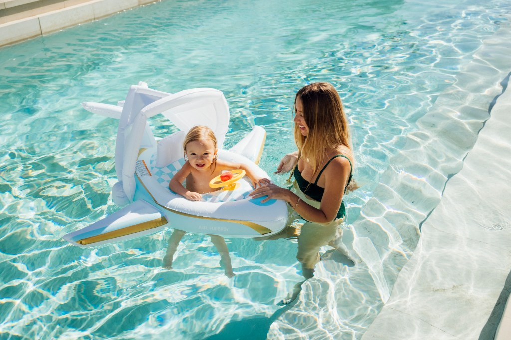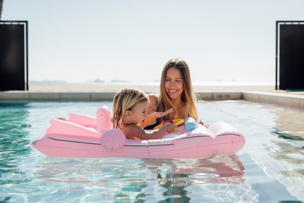 Want the perfect mommy and me photo opp? Every FUNBABY float is a mini-version of an adult-sized style! So hop on over and snag the Retro Pink Convertible ($119), Clear Glitter Unicorn ($69) and the Private Jet (currently sold out but sign up for notifications).