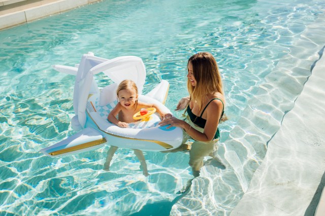 Want the perfect mommy and me photo opp? Every FUNBABY float is a mini-version of an adult-sized style! So hop on over and snag the Retro Pink Convertible ($119), Clear Glitter Unicorn ($69) and the Private Jet (currently sold out but sign up for notifications).