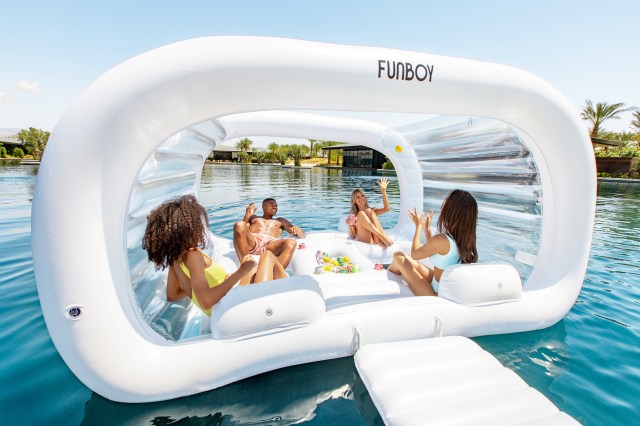 Made for four people, the Dayclub comes with dual mesh foot baths, center storage compartment, a water entry pad, side grab ropes, eight handles and a tether rope. The FUNBOY Cabana Dayclub is only available on funboy.com for $399. Don’t wait to snag this epic float, it’s bound to sell out like last year!