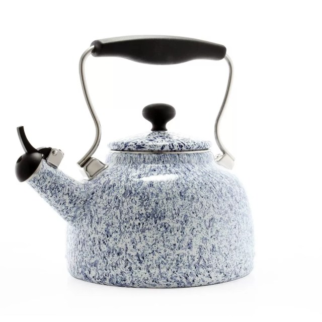 Warm, cozy, and comforting? A hot cup of tea, rich cocoa, deep French press coffee—no matter what the beverage of choice is, this sweet vintage-inspired tea kettle is perfect. Plus, the splatter pattern is a unique pop to add to the kitchen.