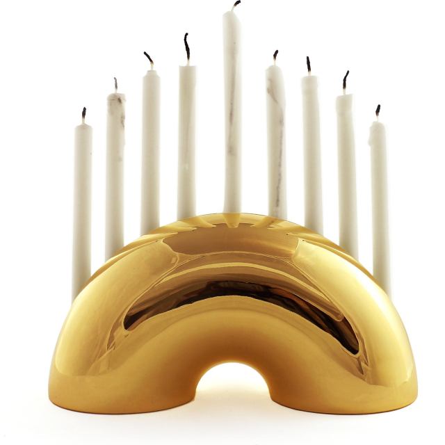This stunning menorah from Modern Mensch is inspired by the favorite bagel shape and is designed to leave out all year with or without candles!