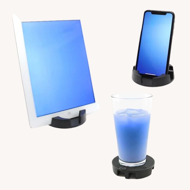 This handy little cell phone holder is specially designed to hold virtually any phone or tablet (with a case or not) in landscape or portrait mode. And with 3 sizing slots, you get the perfect fit every time. Plus, the rubber bottom keeps your device (or even your drink!) secure.
