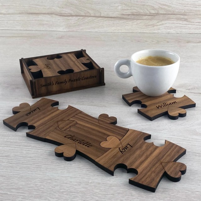 Personalized Wooden Puzzle Coasters ($16.18+), Etsy—Buy Now