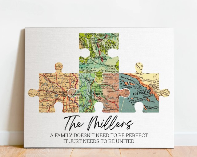 Personalized Family Puzzle Map Canvas Print ($25.50+), Etsy—Buy Now