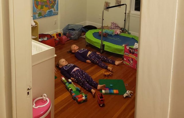 The photo shows her pajama-clad kids laying on the floor as quiet as can be and you can almost hear a pin drop just looking at the picture.