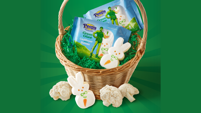 Introducing Green Giant Cauliflower-Flavored PEEPS! The giant marshmallow bunnies come with a hint of cauliflower flavor in the iconic shape you know and love.