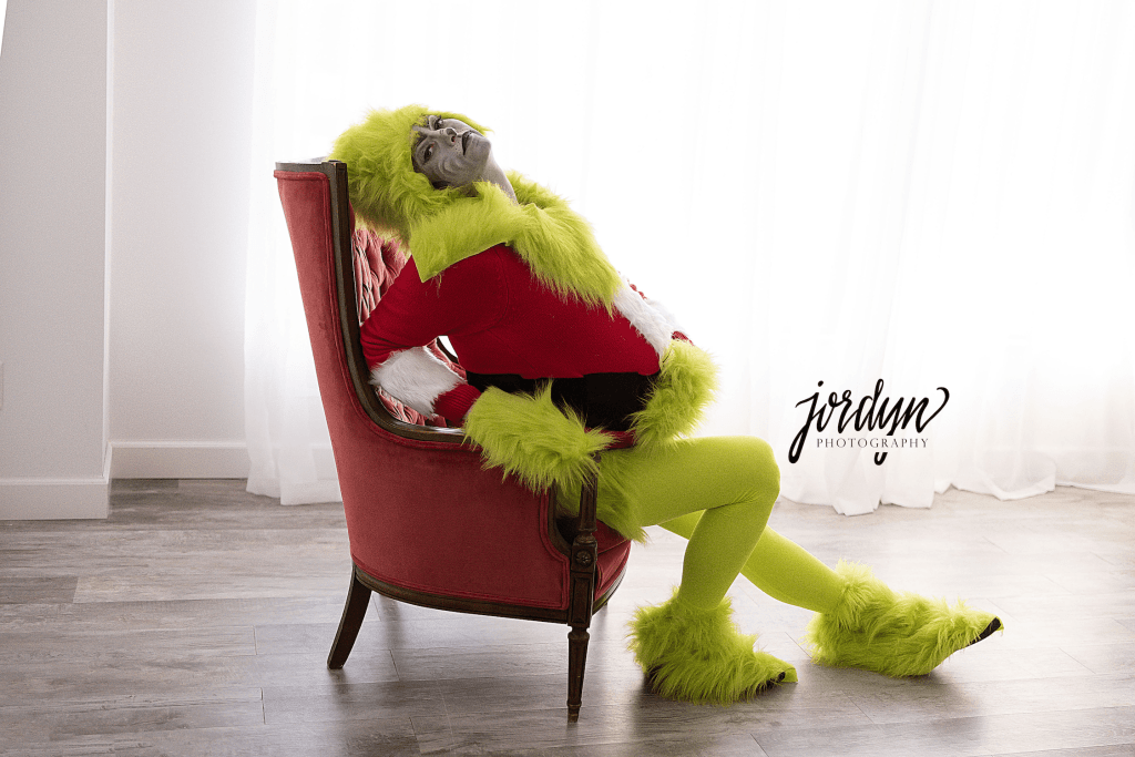 Langer tells Red Tricycle, “After losing my son, Kellan, in 2019 at 36 weeks pregnant, this pregnancy has been difficult and scary to navigate. I have been trying to challenge myself to embrace it, so I decided it would be fun to do a creative and unique maternity shoot. One of my best friends, Audra, is a makeup artist, and another great friend, Megan, can sew anything—so I asked for their help. After creating the perfect costume, I showed up and surprised my photographer, Jordyn, dressed as The Grinch!
