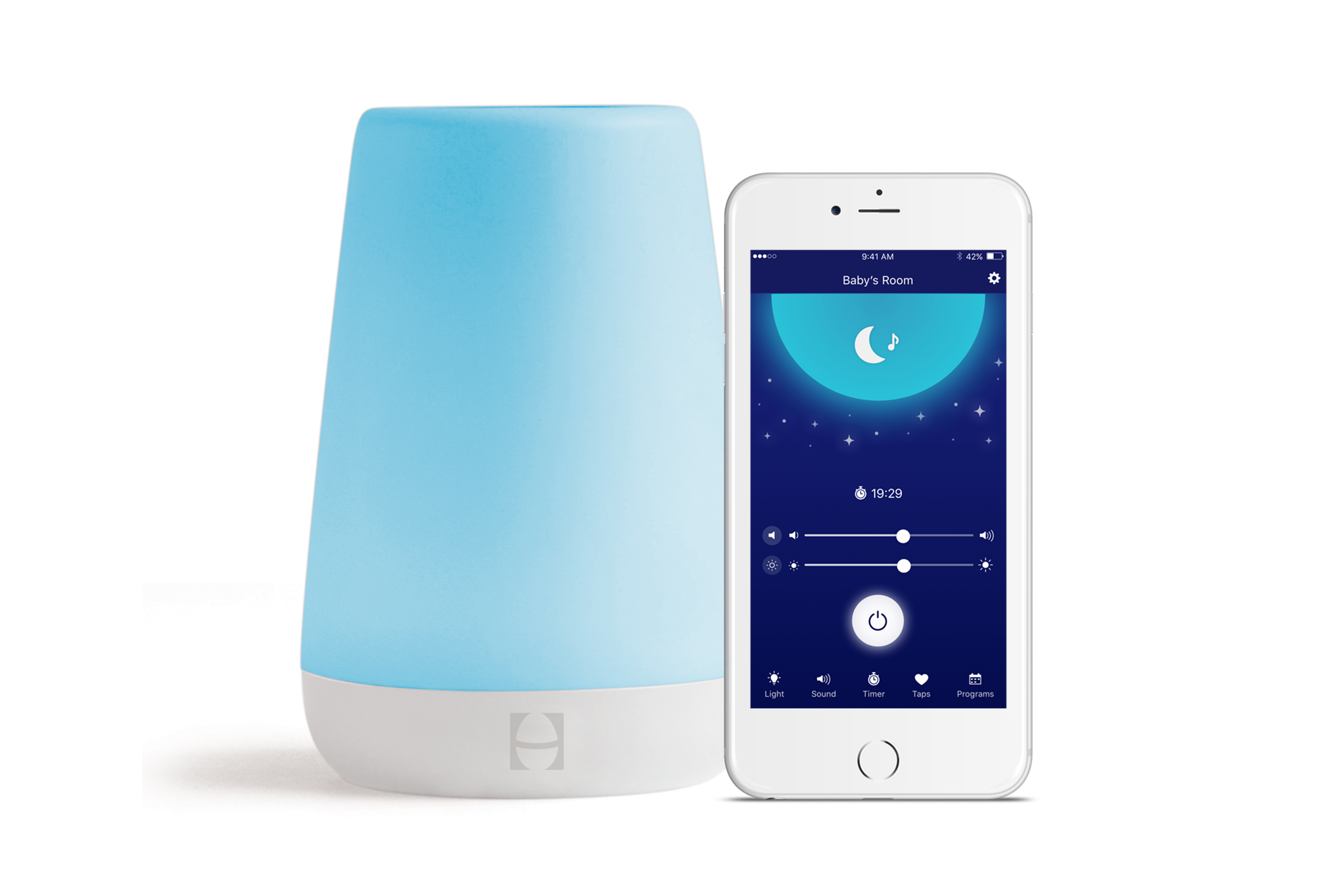 Hatch Baby Rest is streamlined and multi-functional, and serves as a night light, sound machine and time-to-rise indicator all in one. It all comes with the ability to control its functions like the volume and brightness via your phone. The remote programming is a god-send for parents. Just think: no more holding your breath and tiptoeing through the nursery to turn noise machines or night lights on and off without waking the baby.