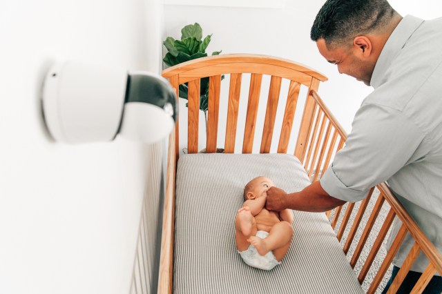 This combination video and breathing wear monitor has everything you need for baby’s optimal sleep. The overhead camera allows you to see all that is going on in and around the sleep space and includes two-way audio. The camera also reads the fabric patterns on the included electronic-free breathing wear and sends real-time alerts right to your smartphone. There is a wall mount and a floor stand that keep cords safely out of reach and allow for easy portability when you're on the go. The app can show you all you need to know about baby’s sleep patterns and offers tips for making sure everyone has a good night. The Nanit Plus camera works with Amazon Echo and Echo Spot, and the complete baby monitoring system is eligible for purchase with FSA/HSA healthcare benefits. Add Nanit Pajamas ($29.99) to monitor baby's breathing motion in real time without wires or sensors. The pajamas work exclusively with Nanit cameras.