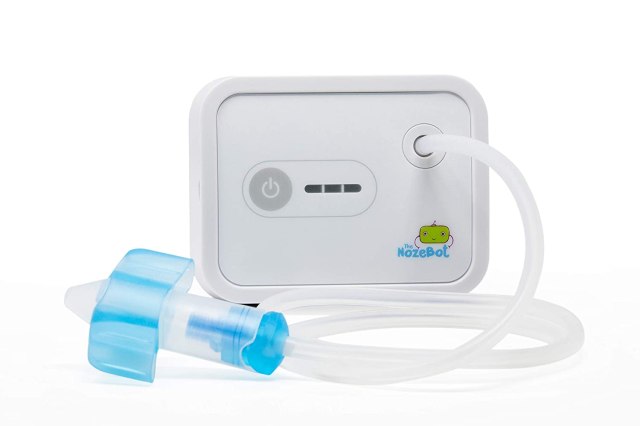 Designed by a pediatric ear, nose and throat specialist, the NozeBot takes cleaning boogies to a whole new level. This nasal aspirator uses hospital-grade suction to safely and hygienically clean your child's nose when they're sick. You place two fingers in the ingeniously designed nosepiece, leaving three fingers to help stabilize your child's head. It's portable and rechargeable, and the nosepiece and tubing are dishwasher-safe.