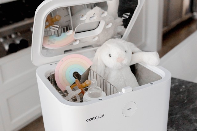 Make sure the items your kids put in their mouth are clean with this compact UV-C sanitizer. It's sleek and small enough to live on your kitchen counter for easy cleaning of toys, bottles and pacifiers—even stuffies and electronic gadgets. This ultraviolet sanitizer and dryer uses ultraviolet C lights to kill germs and bacteria in minutes, without the use of water or heat. Use the sanitizer or dryer on their own or use both combined. When you're not using the sanitizer for baby gear, pop in your cell phone, makeup brushes, shaver or toothbrushes for a cleaning.