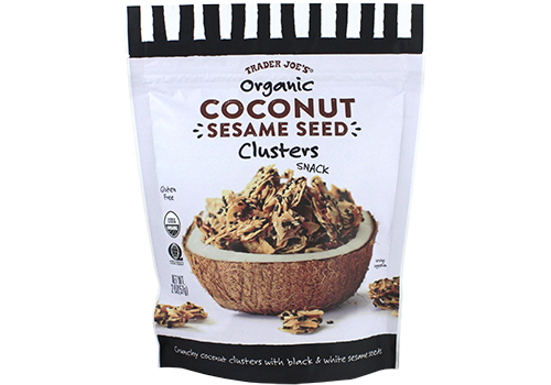 When hunger strikes between meals, we usually crave something sweet and easy—which doesn’t always lead to the healthiest choices (a whole bag of chocolate bark, anyone?). Trader Joe’s new Coconut Sesame Seed Clusters deliver sweetness and lasting energy in a convenient snack bag you can throw in your bag or keep in the car—and this yummy concoction won’t melt as the days warm up!
